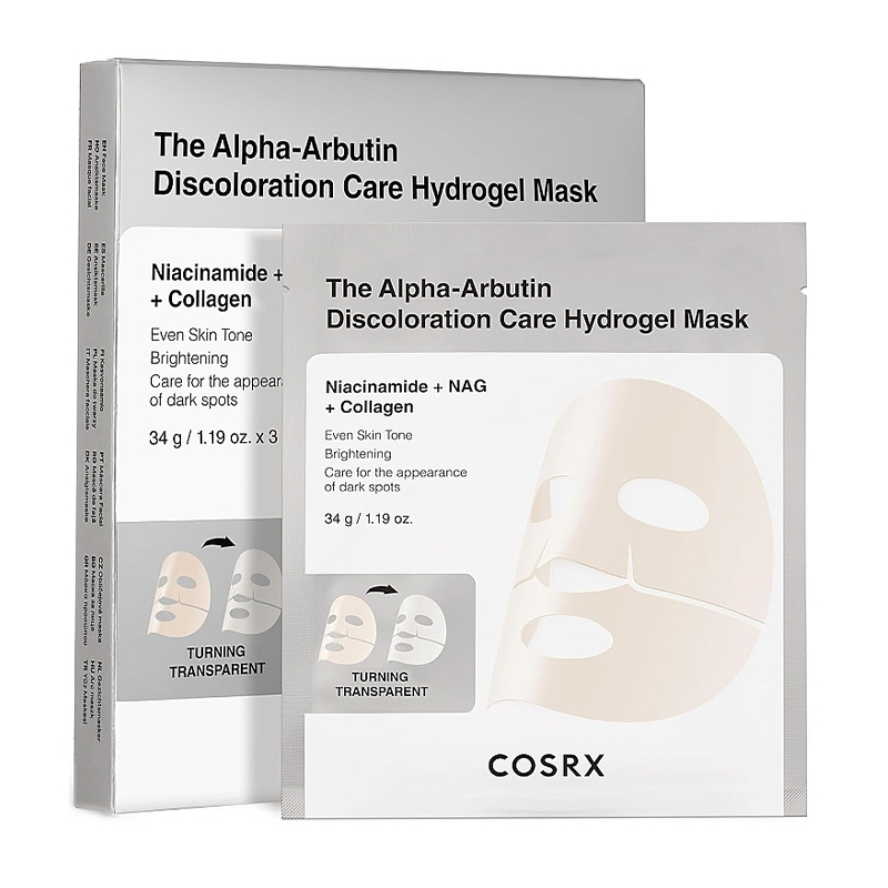 COSRX Zestaw hydrożelowych maseczek do pielęgnacji skóry z przebarwieniami z alfa-arbutyną Arbutin Discoloration Care Hydrogel Mask, 34 g * 3 szt.