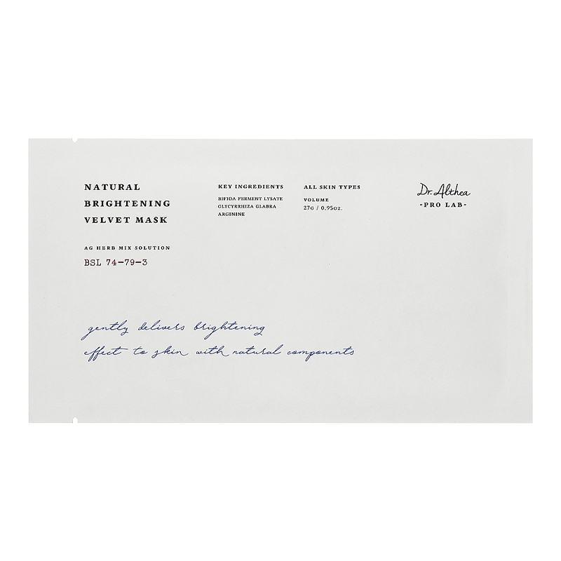 Dr.Althea Pro Lab Materiałowa maska na twarz KOMPLEKS WYCIĄGÓW Natural Brightening Velvet Mask, 1 szt.*27 ml