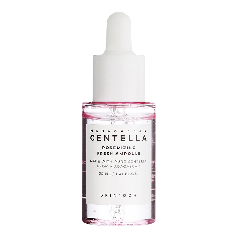 SKIN1004 Madagascar Centella Poremizing Fresh Ampoule zwęża rozszerzone pory, napina i ujędrnia skórę, a także utrzymuje ją czystą, zapobiegając zatykaniu porów i tłustemu połyskowi. Produkt zmniejsza głębokość i szerokość porów, zmniejsza ich widoczność i utrzymuje skórę czystą, a także łagodzi i zmiękcza, wygładza ulgę, nadaje elastyczność i jędrność, zapobiega przedwczesnemu starzeniu się. Gęsta żelowa konsystencja odświeża, doskonale nawilża bez pozostawiania lepkości, normalizuje równowagę hydrolipidową. Odpowiedni dla każdego rodzaju skóry z rozszerzonymi porami.