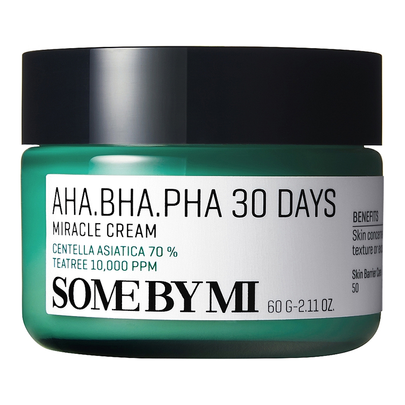 Some By Mi - Wielofunkcyjny krem do twarzy z kwasami - krem z kwasami AHA, BHA i PHA, przeznaczony do złuszczania skóry problemowej, tłustej, starzejącej się i wymagającej regeneracji. Produkt zawiera 70% ekstraktu z centelli azjatyckiej, który łagodzi i regeneruje skórę, przyspiesza gojenie się ran, łagodzi podrażnienia, a także ekstrakt z drzewa herbacianego o działaniu antyseptycznym i przeciwzapalnym. Kwasy AHA, BHA i PHA skutecznie usuwają martwe komórki, oczyszczają skórę i pomagają zmniejszyć plamy pigmentacyjne. Sok z aloesu dodatkowo nawilża i łagodzi podrażnienia i zaczerwienienia. Składniki aktywne: ekstrakt z centelli azjatyckiej 70% - łagodzi i regeneruje skórę, przyspiesza gojenie się ran, łagodzi podrażnienia, ekstrakt z drzewa herbacianego - ma działanie antyseptyczne i przeciwzapalne, kwasy AHA – skutecznie usuwają martwe komórki naskórka, przy regularnym stosowaniu poprawiają elastyczność skóry, rozjaśniają plamy pigmentacyjne, kwasy BHA – dzięki temu, że rozpuszczają się w tłuszczach, mają zdolność odblokowywania zatkanych gruczołów łojowych, usuwając zanieczyszczenia i sebum, Kwasy PHA – odświeżają i oczyszczają skórę, zmniejszając ilość zaskórników; przy regularnym stosowaniu zwiększają poziom nawilżenia i elastyczności skóry. Sok z aloesu – nawilża i łagodzi podrażnienia oraz zaczerwienienia.