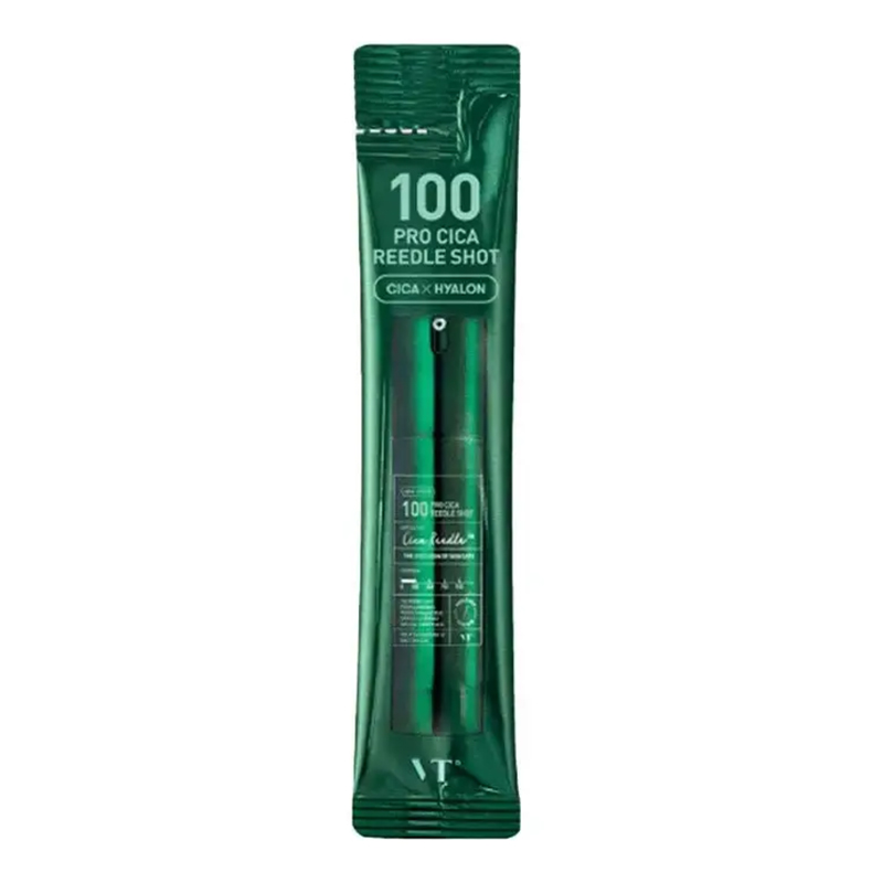 erum booster z mikroigłami do skóry wrażliwej VT Cosmetics Pro Cica Reedle Shot 100 ma na celu odbudowę bariery ochronnej i płaszcza lipidowego. Produkt pomaga normalizować naturalne procesy złuszczania zrogowaciałych komórek i regeneracji naskórka. Technologia mikroigłowa CicaReedle™ (95 000 ppm) zapewnia dostarczanie składników aktywnych do głębokich warstw naskórka i stymuluje procesy odnowy na poziomie komórkowym. Mikroigły są 14 razy mniejsze niż rozmiar porów, a ich otoczka zawiera 14 rodzajów minerałów niezbędnych do tłumienia stanów zapalnych i przyspieszenia gojenia poprzez poprawę metabolizmu tlenu.