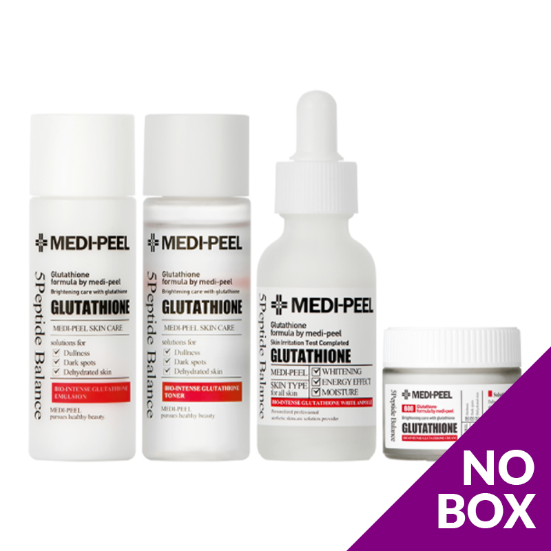 Bio-intense Glutathione White Ampoule: Aqua, Niacinamide, Helianthus Annuus (Sunflower) Seed Oil, Glutathione, 1,2-Hexanediol, Zanthoxylum Piperitum Fruit Extract, Pulsatilla Koreana Extract, Usnea Barbata (Lichen) Extract, Cetearyl Olivate, Parfum, Sodium Hyaluronate, Phyllanthus Emblica (Indian Gooseberry) Fruit Extract, C13-14 Isoparaffin, Glycerin, Ethylhexylglycerin, Triethanolamine, Carbomer, Laureth-7, Hydrogenated Lecithin, Polyglyceryl-10 Stearate, Panthenol, Tocopheryl Acetate, Sodium Ascorbyl Phosphate, Veronica Officinalis (Speedwell) Extract, Primula Veris Extract, Mentha Piperita (Peppermint) Leaf Extract, Melissa Officinalis (Lemon Balm) Leaf Extract, Malva Sylvestris (Mallow) Extract, Achillea Millefolium (Common Yarrow) Extract, Glyceryl Linolenate, Glyceryl Arachidonate, Thiamine Hcl, Retinyl Palmitate, Pyridoxine, Folic Acid, Biotin, Cyanocobalamin, SH-Polypeptide-3, Sh-Polypeptide-16, SH-Oligopeptide-2, SH-Oligopeptide-1, SH-Polypeptide-1