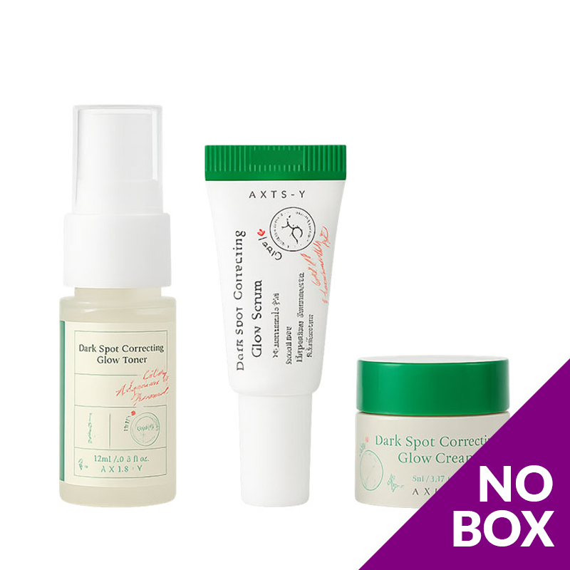 AXIS-Y Dark Spot Correcting Glow Toner: Aqua, Butylene Glycol, Niacinamide, Ethylhexyl Stearate, Caprylic/Capric Triglyceride, Cetyl Ethylhexanoate, Glutathione, Sodium Ascorbyl Phosphate, Salix Alba (Willow) Bark Extract, Adenosine, Sodium Hyaluronate, Hydroxypropyltrimonium Hyaluronate, Sodium Acetylated Hyaluronate, Hydrolyzed Hyaluronic Acid, Hyaluronic Acid, Sodium Hyaluronate Crosspolymer, Hydrolyzed Sodium Hyaluronate, Potassium Hyaluronate, Panthenol, Squalane, Glycerin, Allantoin, Cyanocobalamin, Terminalia Ferdinandiana Fruit Extract, Hippophae Rhamnoides Fruit Extract, Malpighia Glabra (Acerola) Fruit Extract, Brassica Oleracea Italica (Broccoli) Extract, Morus Alba Root Extract, Phaseolus Radiatus Seed Extract, Canavalia Gladiata Seed Extract, Glycine Soja (Soybean) Seed Extract, Lens Esculenta (Lentil) Seed Extract, Ceratonia Siliqua (Carob) Seed Extract, Centella Asiatica Leaf Extract, Ceramide NP, Acetyl Octapeptide-3, Dipeptide-1, Tripeptide-2, Palmitoyl Dipeptide-7, Dipeptide-4, Sorbitan Stearate, Cetearyl Alcohol, 1,2-Hexanediol, Stearic Acid, Polysorbate 60, Ethylhexylglycerin, Hydrogenated Olive Oil Unsaponifiables, Disodium EDTA, Hydroxypropyl Cyclodextrin, Pueraria Lobata Root Extract, Lactobacillus Ferment Lysate, Chlorphenesin, Maltodextrin, Melia Azadirachta Flower Extract, Ocimum Sanctum Leaf Extract, Melia Azadirachta Leaf Extract, Arginine, Phytosterols, Carbomer, Curcuma Longa (Turmeric) Root Extract, Corallina Officinalis Extract, Caprylyl Glycol, Sodium Citrate, Polyglyceryl-10 Laurate. Citric Acid AXIS-Y Dark Spot Correcting Glow Serum: Aqua, Glycerin, Niacinamide, Propanediol, Butylene Glycol, Erythritol, Sodium Hyaluronate, Squalane, Hydrogenated Olive Oil Unsaponifiables, Oryza Sativa (Rice) Bran Extract, Calendula Officinalis Extract, Carica Papaya (Papaya) Fruit Extract, Hippophae Rhamnoides Fruit Extract, Malpighia Glabra (Acerola) Fruit Extract, Polyglyceryl-10 Laurate, Chlorphenesin, Arginine, Ethylhexylglycerin, Carbomer, Glutathione, 1,2-Hexanediol, Hydroxypropyl Cyclodextrin, Disodium EDTA, Hydroxyethyl Cellulose, Allantoin, Disodium Phosphate, Polysorbate 60, Sodium Phosphate Rosmarinus Officinalis (Rosemary) Leaf Oil. Dark Spot Correcting Glow Cream: Aqua, Glycerin, Propanediol, Niacinamide, Butylene Glycol, Alpha-Arbutin, Caprylic/Capric Triglyceride, Isohexadecane, Betaine, Ceramide NP, Centella Asiatica Leaf Extract, Adenosine, Sodium Ascorbyl Phosphate, Glutathione, Squalane, Allantoin, Asiaticoside, Centella Asiatica Extract, Madecassoside, Houttuynia Cordata Extract, Morus Alba Root Extract, Phaseolus Radiatus Seed Extract, Canavalia Gladiata Seed Extract, Glycine Soja (Soybean) Seed Extract, Lens Esculenta (Lentil) Seed Extract, Ceratonia Siliqua (Carob) Seed Extract, Pueraria Lobata Root Extract, Brassica Oleracea Italica (Broccoli) Extract, Terminalia Ferdinandiana Fruit Extract, Hippophae Rhamnoides Fruit Extract, Malpighia Glabra (Acerola) Fruit Extract, Sodium Hyaluronate, Hydroxypropyltrimonium Hyaluronate, Sodium Acetylated Hyaluronate, Hydrolyzed Hyaluronic Acid, Hyaluronic Acid, Sodium Hyaluronate Crosspolymer, Hydrolyzed Sodium Hyaluronate, Potassium Hyaluronate, Acetyl Octapeptide-3, Dipeptide-1, Tripeptide-2, Palmitoyl Dipeptide-7, Dipeptide-4, SH-Oligopeptide-1, 1,2-Hexanediol, Glyceryl Stearate, Hydrogenated Lecithin, Acrylates/C10-30 Alkyl Acrylate Crosspolymer, Sorbitan Sesquioleate, Ethylhexylglycerin, Hydrogenated Olive Oil Unsaponifiables, Xanthan Gum, Hydroxypropyl Cyclodextrin, Lactobacillus Ferment Lysate, Chlorphenesin, Sorbitan Stearate, Stearic Acid, Phytosterols, Arginine, Disodium EDTA, Caprylyl Glycol, Melia Azadirachta Flower Extract, Ocimum Sanctum Leaf Extract, Melia Azadirachta Leaf Extract, Curcuma Longa (Turmeric) Root Extract, Corallina Officinalis Extract, Polyglyceryl-10 Laurate.