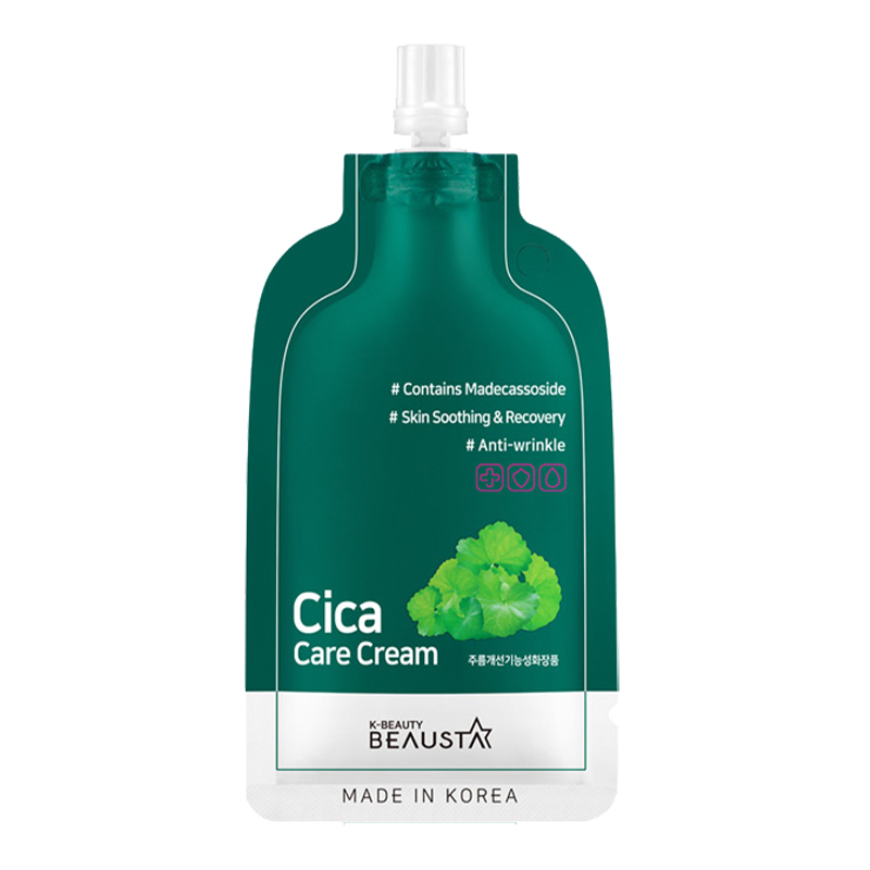 Beausta Cica Care Cream - це відновлювальний крем із комплексом CICA, який заспокоює чутливу шкіру і зміцнює її природні захисні властивості. Він загоює і зволожує пошкоджену шкіру, залишаючи її м'якою і здоровою. Крем швидко вбирається і не залишає липкості, забезпечуючи свіжий фініш. Компактна упаковка зі зручним носиком дає змогу легко дозувати необхідну кількість засобу, робить продукт зручним для носіння з собою та забезпечує гігієнічність використання.
